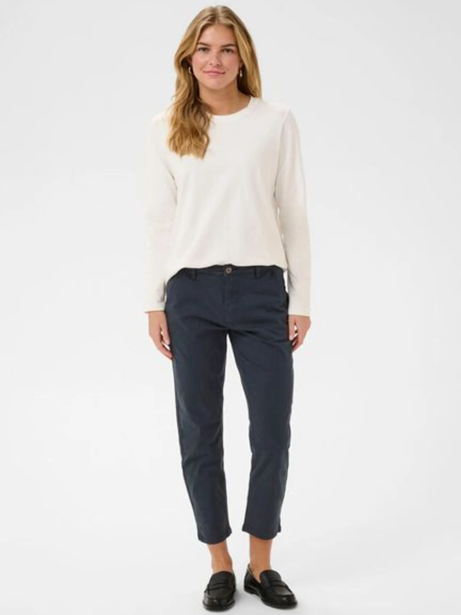 Klassiske chinos bukser med stikklommer på siden og jukselommer bak. Stretch. Ankellengde