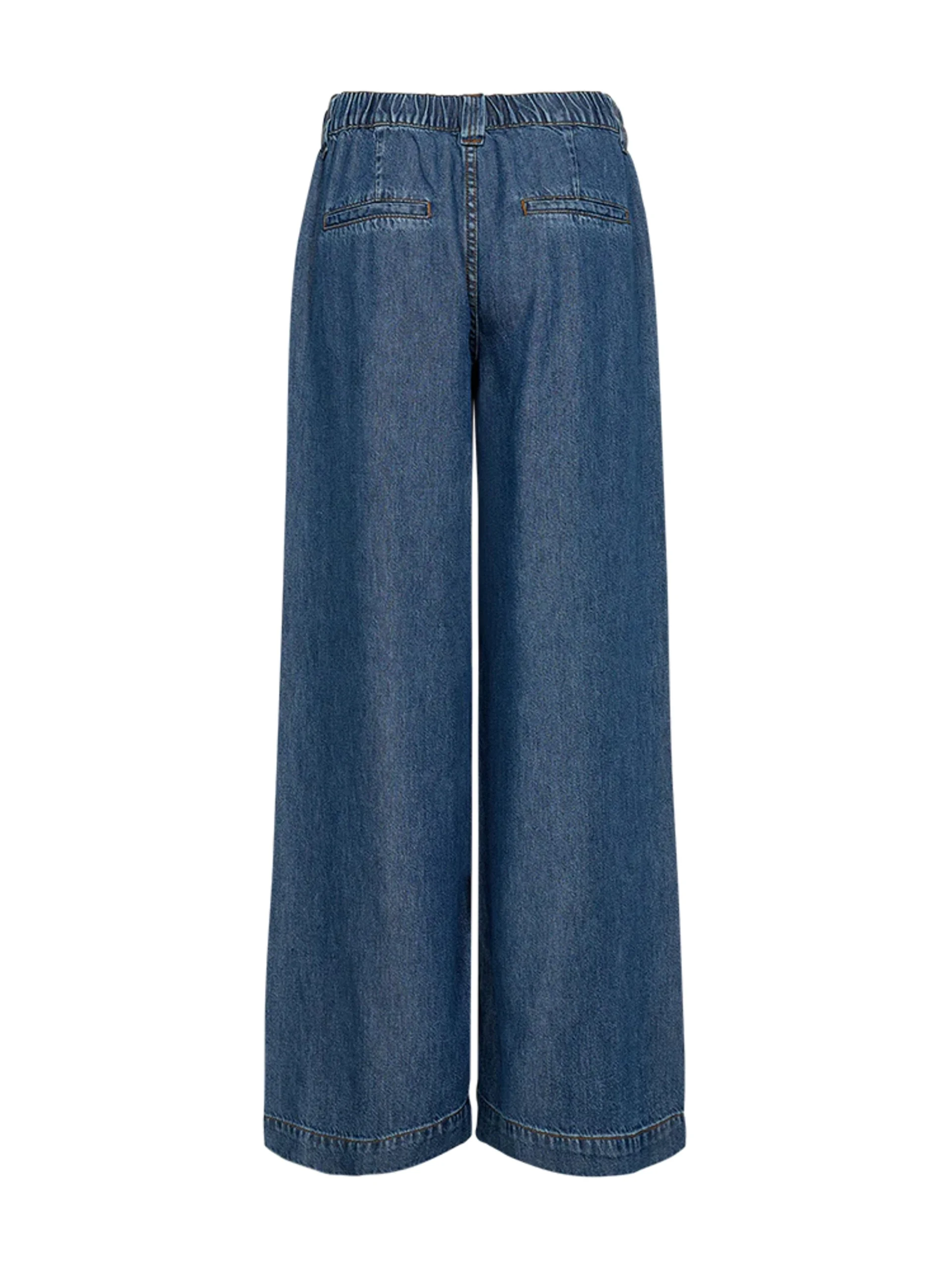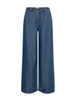 Ledige bukser i myk denim. Vide legger. Lommer i front og ‘jukselommer’ bak. Beltehemper.
