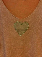 Glitrende genser med hjertemotiv ved V-hals.Lange ermer.