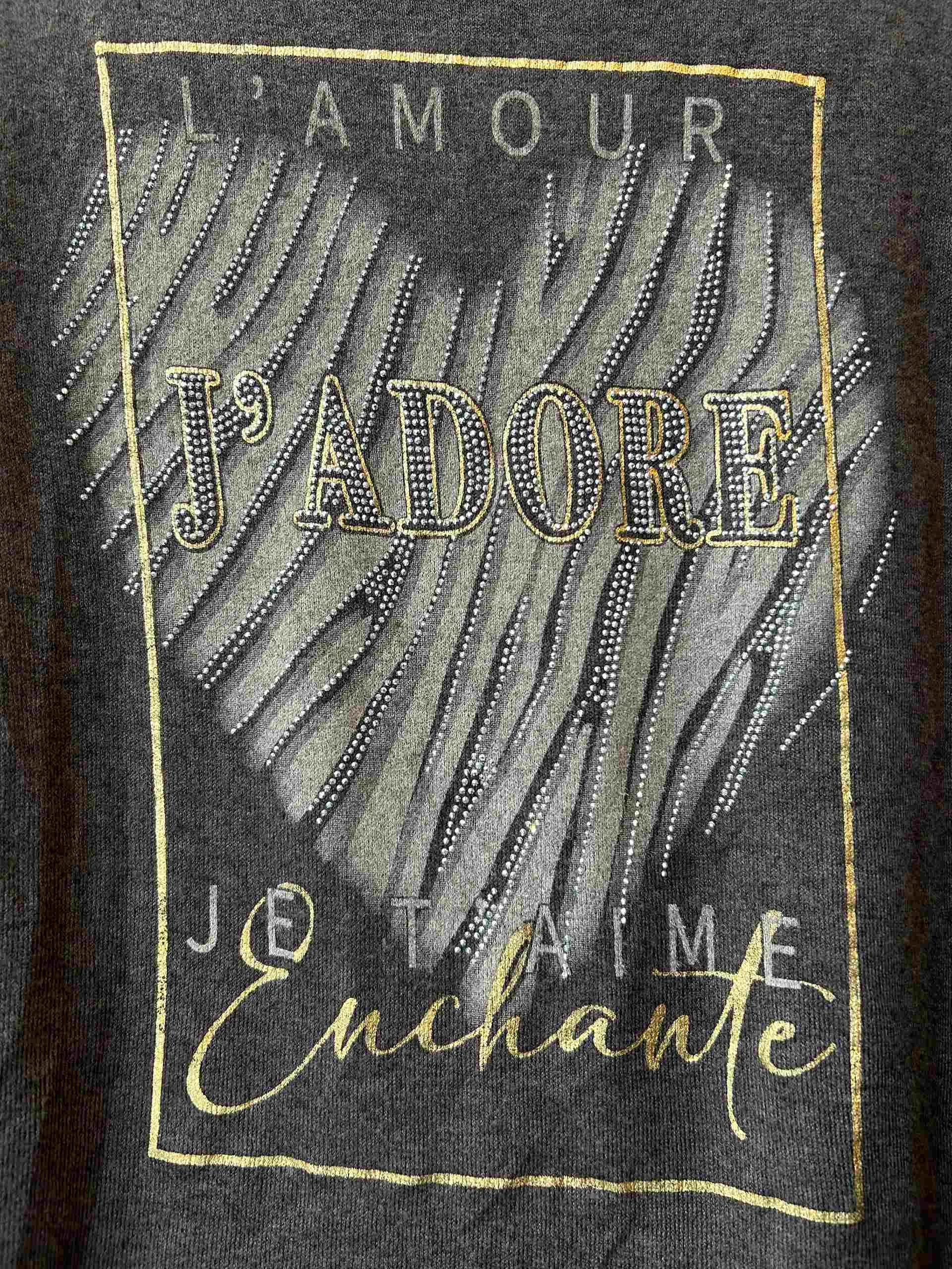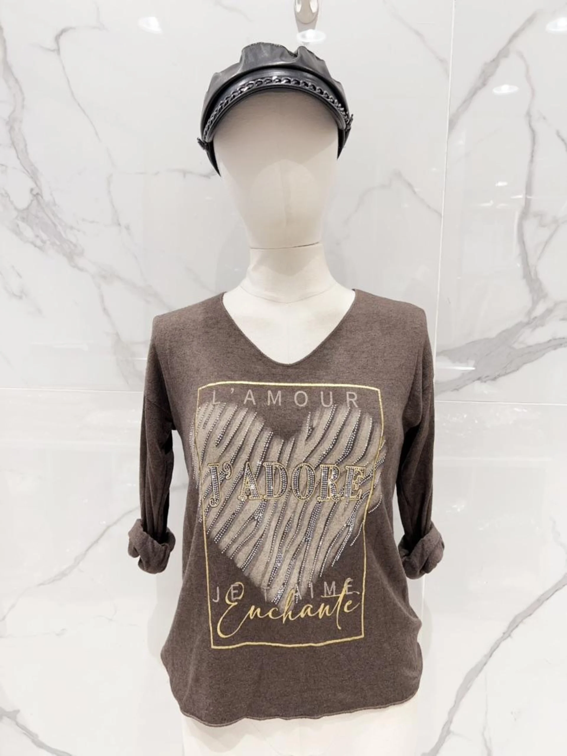 Tynn genser med hjertemotiv med bling i front. V-hals.
