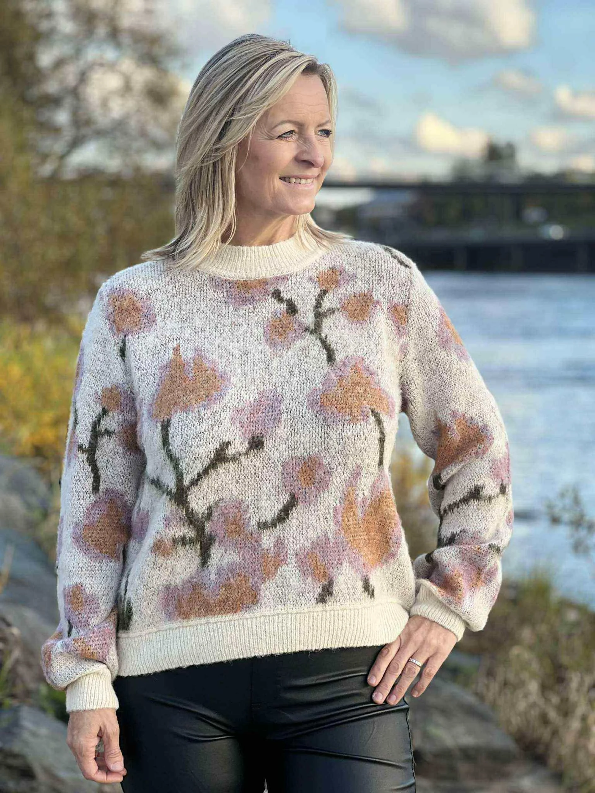 Nydelig genser i veldig mykt materiale. Fint mønster, rund hals og lange ermer.