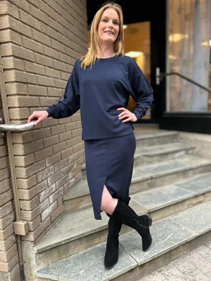 Ledig genser i myk og deilig modalkvalitet med vidde i ermene og rett fasong. Liten splitt nederst på hver side.