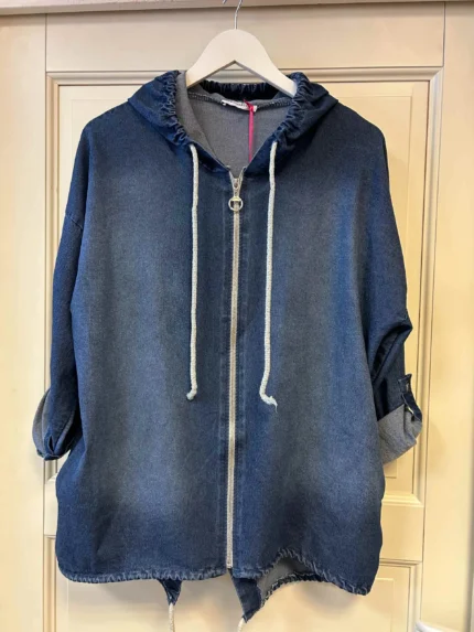 Jakke med leodetaljer i strass på ryggen. Glidelås, lommer.