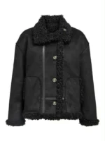 Vrengbar jakke i myk kvalitet. Semsket utseende på den ene siden og Teddy på den andre.