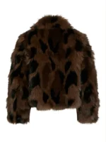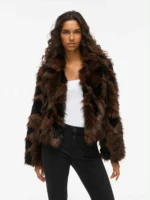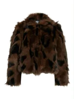 Kort jakke i fuskepels. Krage, hempelukking. Foret.