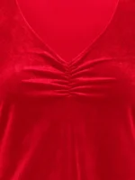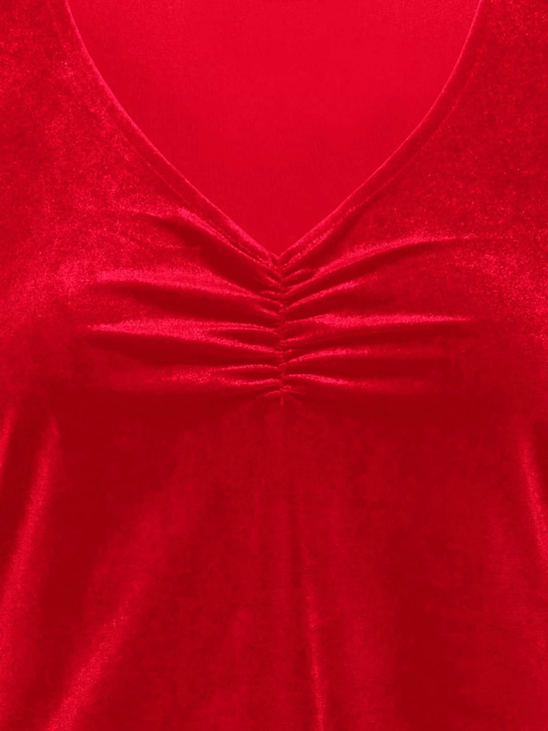 Velurkjole med litt innsvingt fasong. Stretch. Drapering ved utring. V-hals