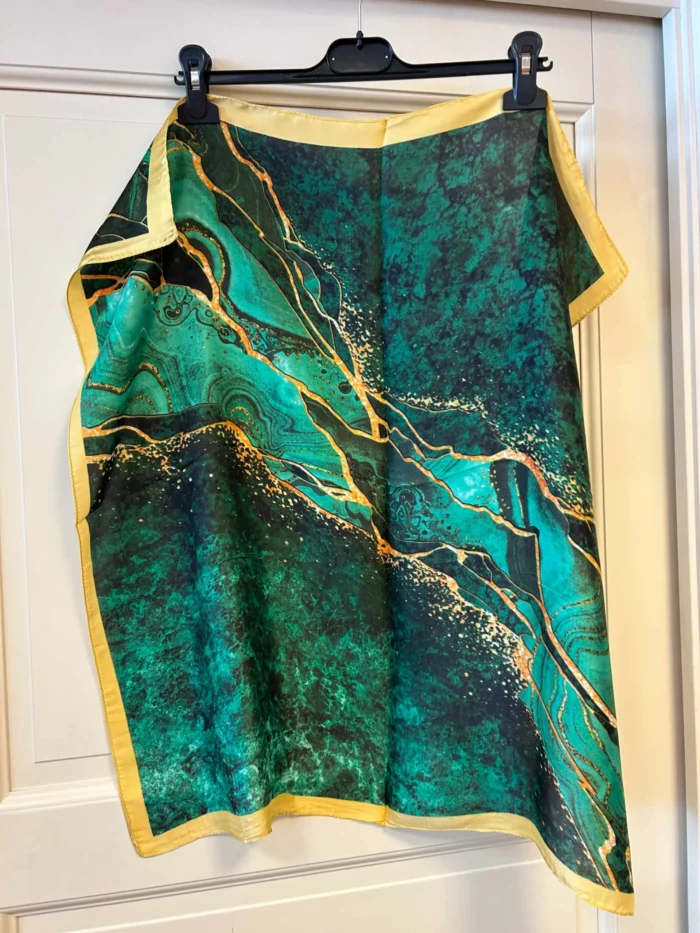 Tynn og liten skjerf med fint print. Bruk gjerne sammen med ring til skjerf.