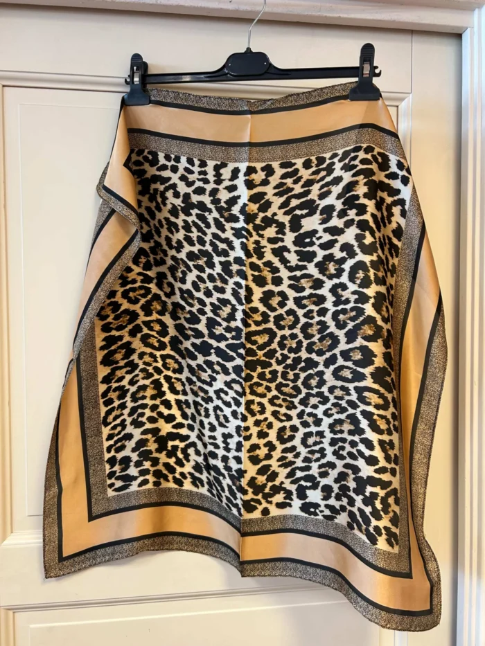 Tynn og liten skjerf med fint print. Bruk gjerne sammen med ring til skjerf.