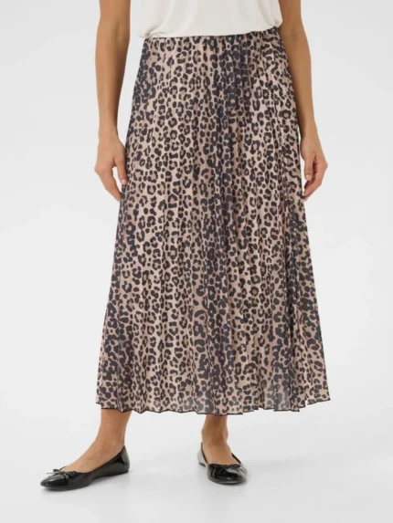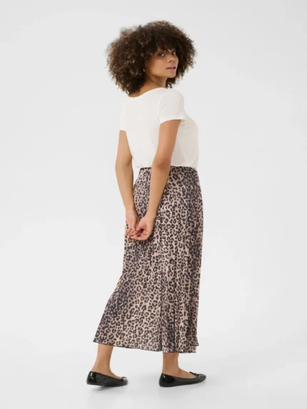 Knelang skjørt i krepp viskose. Brei vaffelstrikk ved midjen. Lommer.