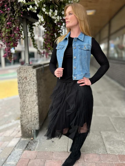 Tøft plisse skjørt i leoprint, strikk i livet. A-fasong.