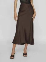 Langt skjørt i silkelook, A-fasong med strikk i livet.