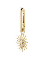 Gullbelagt anheng med solsymbol og krystaller. Med oval karabinkrok.