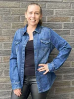 Denimskjorte med bling og brystlommer. Litt innsvinget fasong og god stretch.