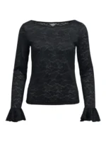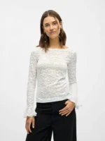 Topp med lange ermer, volanger i enden. Vakker blondemønster. Smal passform