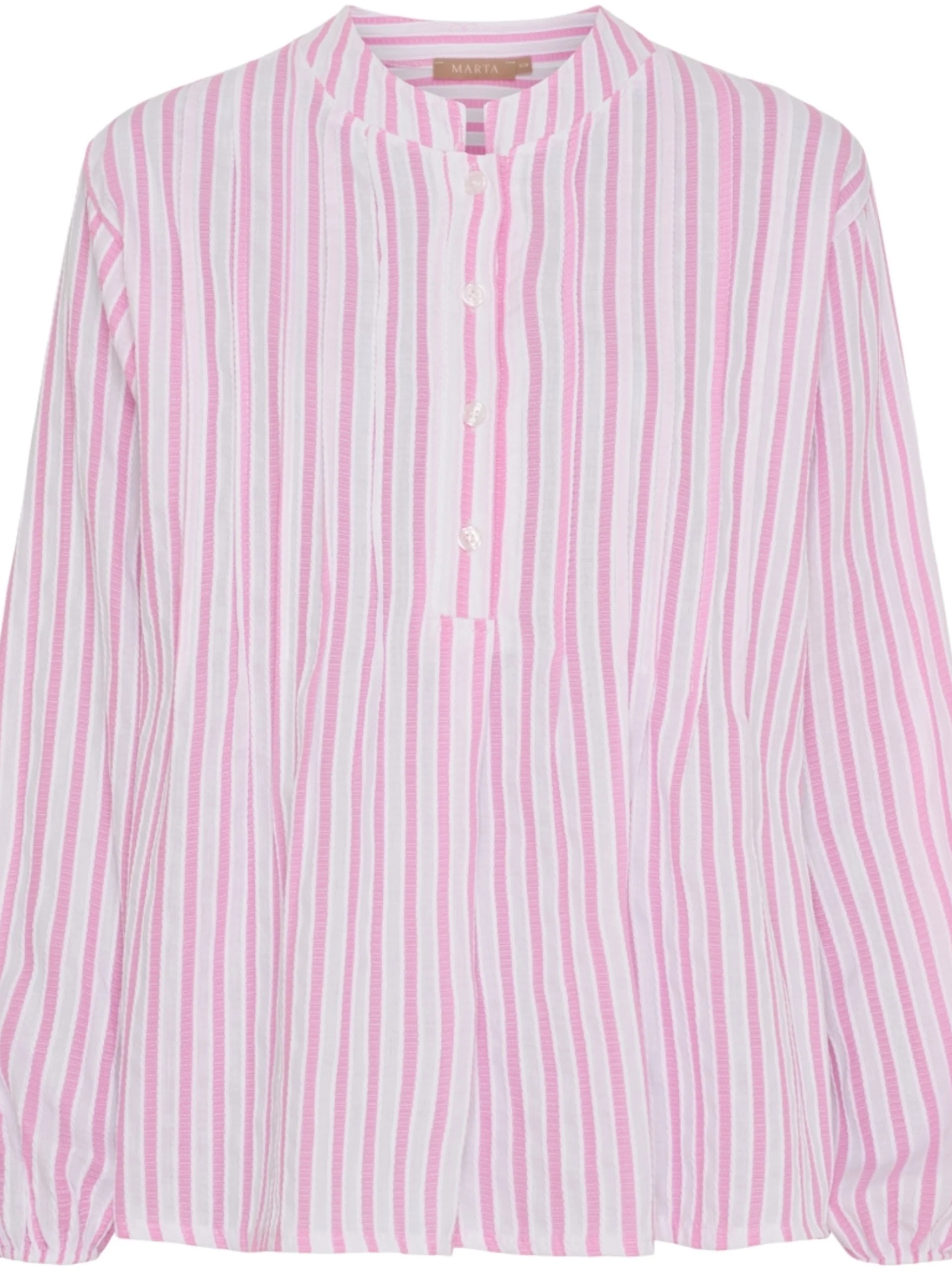 Fin vårbluse i bomull. A-fasong, 4 knapper i front, kina krage. Lange ermer med strikk.