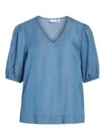 Lett topp med V-hals. Korte ermer med strikk. Rett fasong