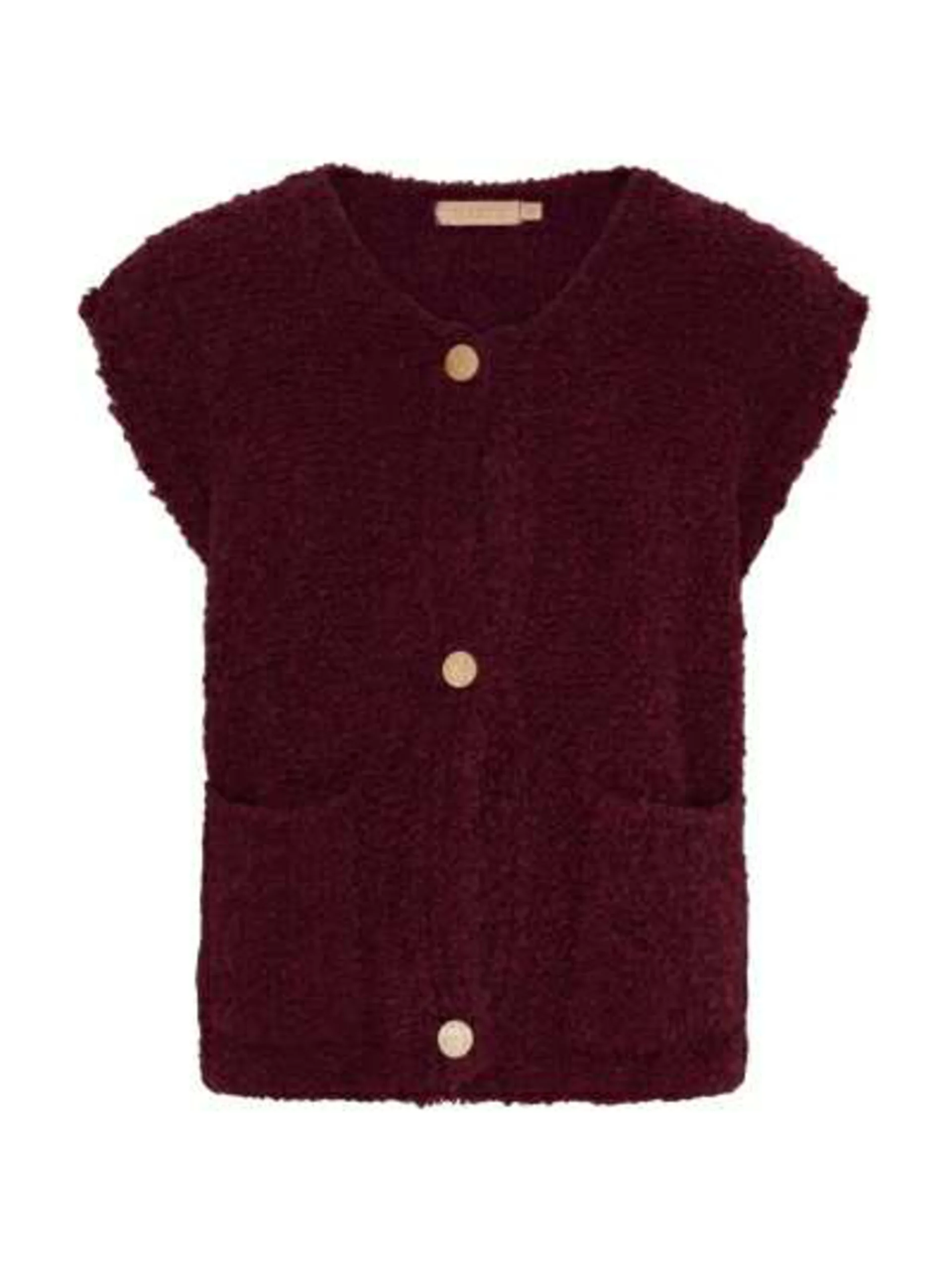 Myk vest med gullfargede knapper. Romslig onesize med lommer.
